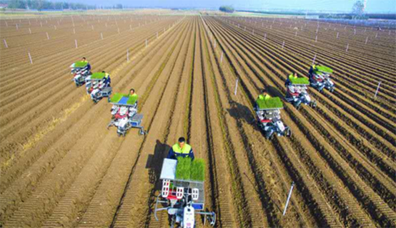4 | 定植 | 人工移苗,插苗,勞動(dòng)效率極低,彎腰作業(yè)工作強(qiáng)度大 | 與傳統(tǒng)移栽方式相比較,自動(dòng)化移栽一是移栽速度快,一般比人工移栽快20倍。二是移栽的質(zhì)量好,行距、株距、直立度和深度都比人工移栽要好,達(dá)到苗全、苗齊、苗勻、苗壯的高標(biāo)準(zhǔn)要求,且避免了緩苗過程,有利于蔥苗快速成長(zhǎng),縮短了生長(zhǎng)期。三是省力,不需要人彎腰作業(yè),減輕了勞動(dòng)強(qiáng)度。四是可以擴(kuò)大種植面積,獲得更多的經(jīng)濟(jì)效益。 |