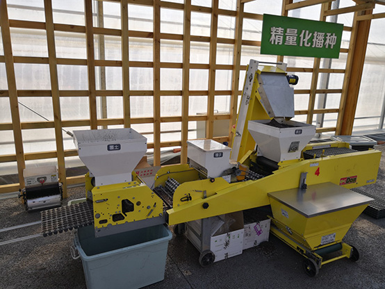 2 | 播種 | 人工移動(dòng)播種,種子漫撒,不均勻,效率低 | 精量化播種使用專利苗盤技術(shù),保證了每個(gè)穴孔精準(zhǔn)播入三粒丸?;路N子,每個(gè)苗盤上共載有660粒包衣種子,育種速度在3960~6600粒/分鐘(6-10盤/分鐘),可實(shí)現(xiàn)人工難以實(shí)現(xiàn)的每畝均勻播種3萬株蔥苗。 |